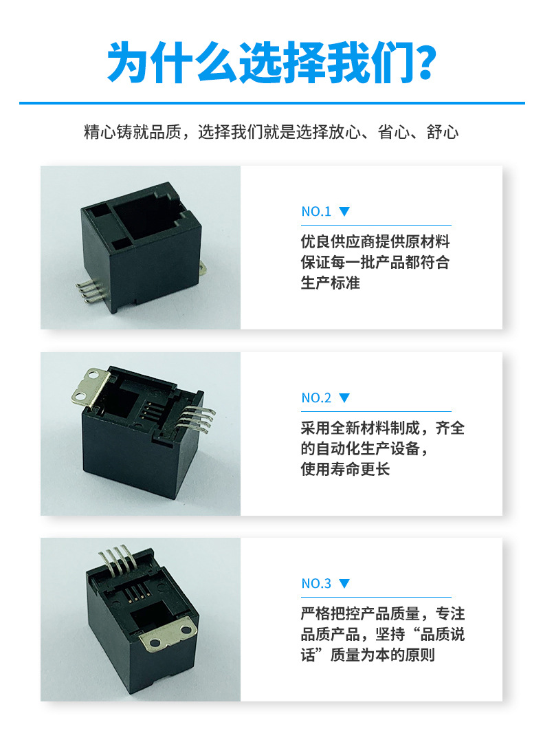 本公司提供優(yōu)良的RJ11、RJ12電話插接件、RJ45網(wǎng)絡(luò)插接件,耐環(huán)境RJ45防水連接器,防水電連接器及其它精密連接器,產(chǎn)品應用于網(wǎng)絡(luò)通訊(電腦主板,網(wǎng)絡(luò)交換機,路由器,電信設(shè)備)、惡劣環(huán)境下數(shù)據(jù)傳輸與控制及電源信號傳輸與控制(戶外LED顯示屏、機器控制、工業(yè)程序控制等)