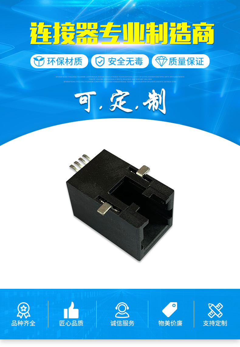 本公司提供優(yōu)良的RJ11、RJ12電話插接件、RJ45網(wǎng)絡(luò)插接件,耐環(huán)境RJ45防水連接器,防水電連接器及其它精密連接器,產(chǎn)品應(yīng)用于網(wǎng)絡(luò)通訊(電腦主板,網(wǎng)絡(luò)交換機,路由器,電信設(shè)備)、惡劣環(huán)境下數(shù)據(jù)傳輸與控制及電源信號傳輸與控制(戶外LED顯示屏、機器控制、工業(yè)程序控制等)