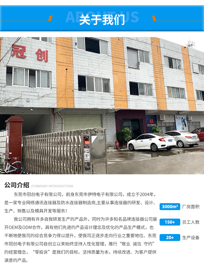 本公司提供優(yōu)良的RJ11、RJ12電話插接件、RJ45網(wǎng)絡(luò)插接件,耐環(huán)境RJ45防水連接器,防水電連接器及其它精密連接器,產(chǎn)品應用于網(wǎng)絡(luò)通訊(電腦主板,網(wǎng)絡(luò)交換機,路由器,電信設(shè)備)、惡劣環(huán)境下數(shù)據(jù)傳輸與控制及電源信號傳輸與控制(戶外LED顯示屏、機器控制、工業(yè)程序控制等)