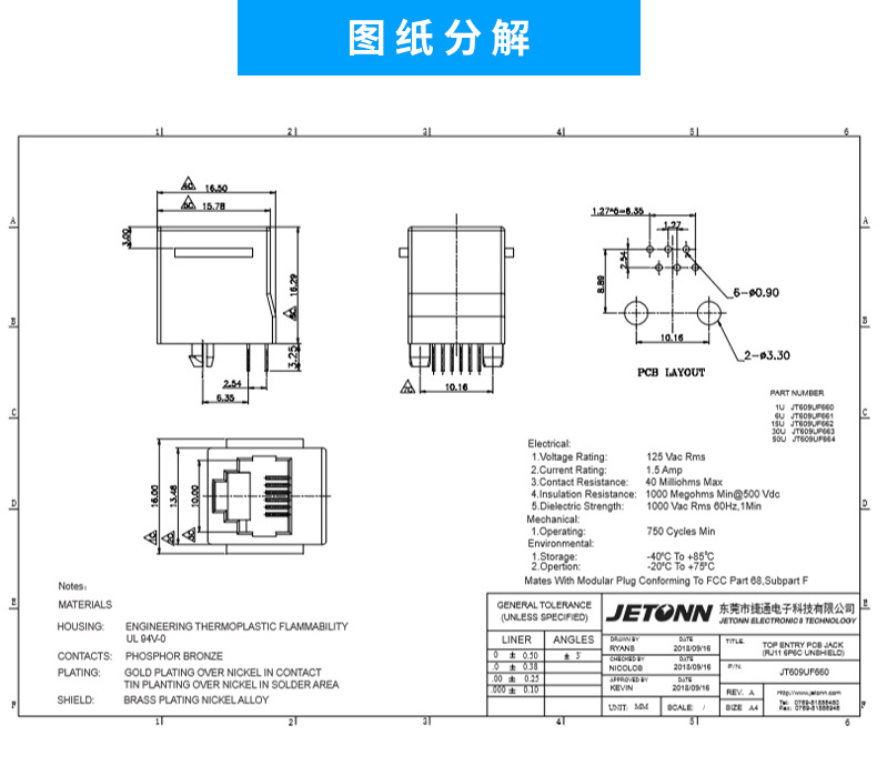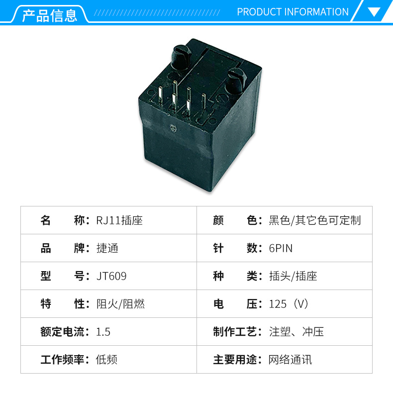 180度RJ11插座 線(xiàn)材成型用RJ11母座