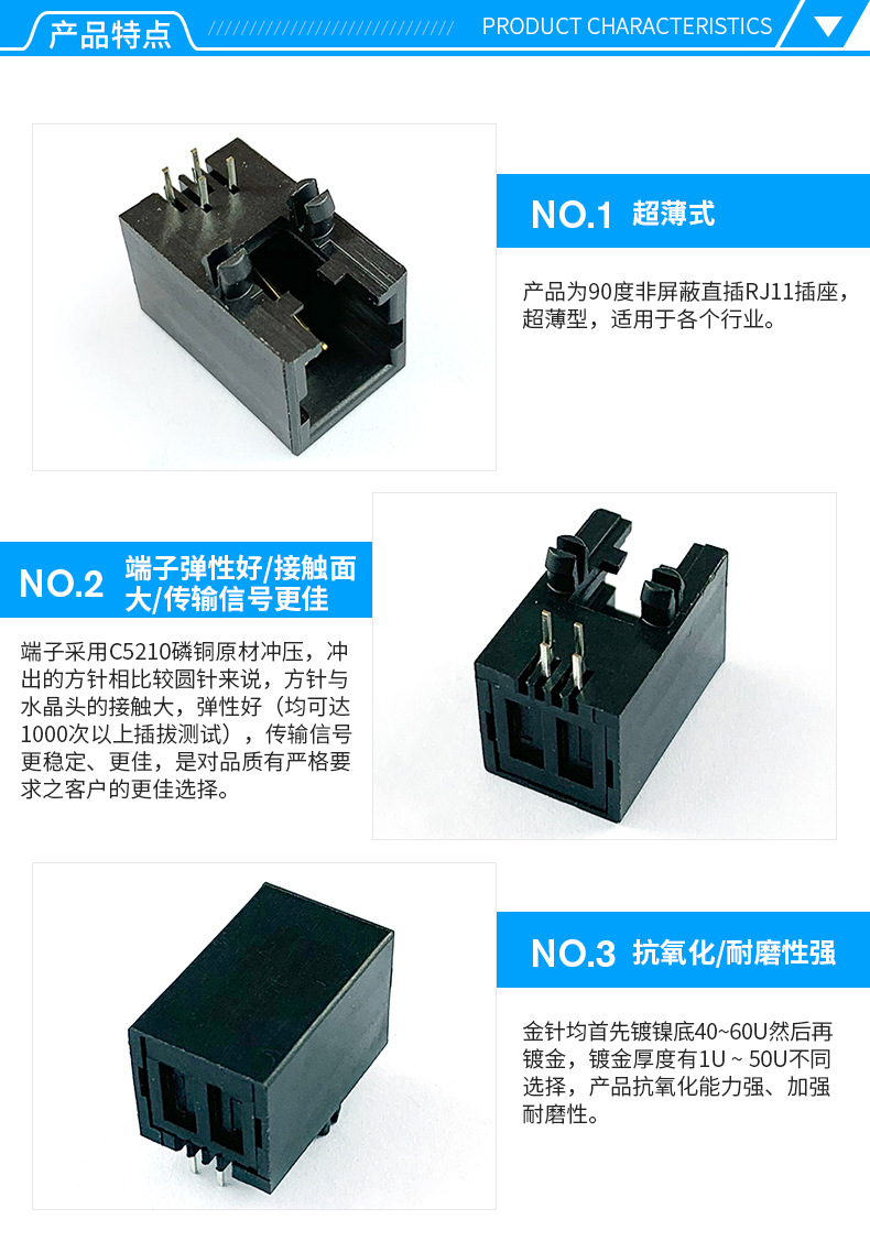本公司提供優(yōu)良的RJ11、RJ12電話插接件、RJ45網(wǎng)絡(luò)插接件,耐環(huán)境RJ45防水連接器,防水電連接器及其它精密連接器,產(chǎn)品應(yīng)用于網(wǎng)絡(luò)通訊(電腦主板,網(wǎng)絡(luò)交換機(jī),路由器,電信設(shè)備)、惡劣環(huán)境下數(shù)據(jù)傳輸與控制及電源信號(hào)傳輸與控制(戶外LED顯示屏、機(jī)器控制、工業(yè)程序控制等)