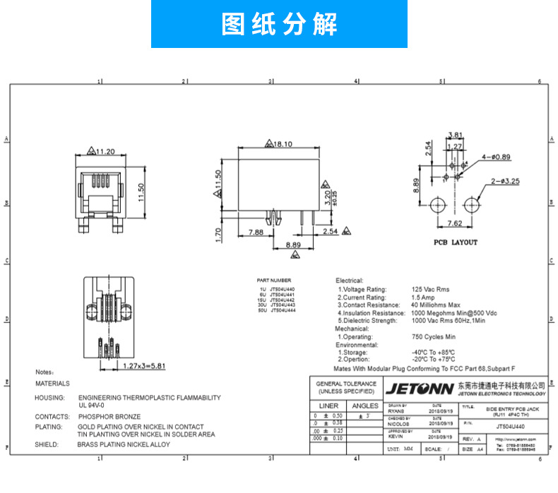 RJ12電話插座 4P4C電話插座